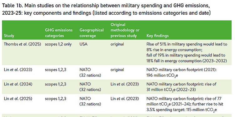 * Estratto dal report Military spending rises and greenhouse gas emissions. What does the research say?, Stuart Parkinson, Scientists for Global Responsibility (SGR), settembre 2025. Creative Commons Licence, Attribution-ShareAlike 4.0 International. Traduzione a cura di Paginauno.